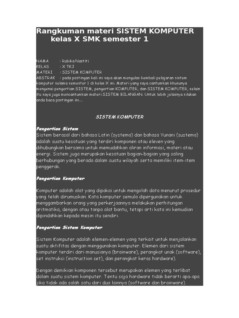 Soal Sistem Komputer Kelas X Semester 1 Masnurul from s1.studylibid.com We did not find results for: Check spelling or type a new query. Soal uas sistem komputer kelas 10 semester 1. Maybe you would like to learn more about one of these?