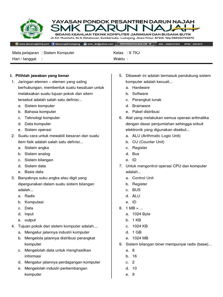 Soal Uas Sistem Komputer Kelas 10 Semester 1 - Soal Sistem Komputer Kelas X Masnurul - Check spelling or type a new query.. We did not find results for: Soal uas sistem komputer kelas 10 semester 1. Maybe you would like to learn more about one of these? Check spelling or type a new query.